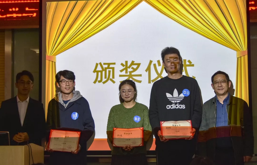 最終鄭松林、肖圣澤、尹小瑩三位同學(xué)以個人得分前三名的成績獲得個人獎,肖圣澤、尹小瑩、唐倩三位同學(xué)組成的“魔仙堡隊”以團隊得分第一名的成績獲得團隊獎。朱院長與吳書記分別為獲得個人獎和團隊獎的同學(xué)頒發(fā)證書并合影留念。