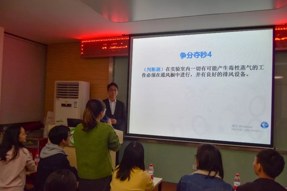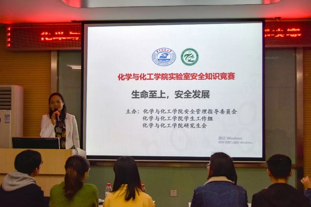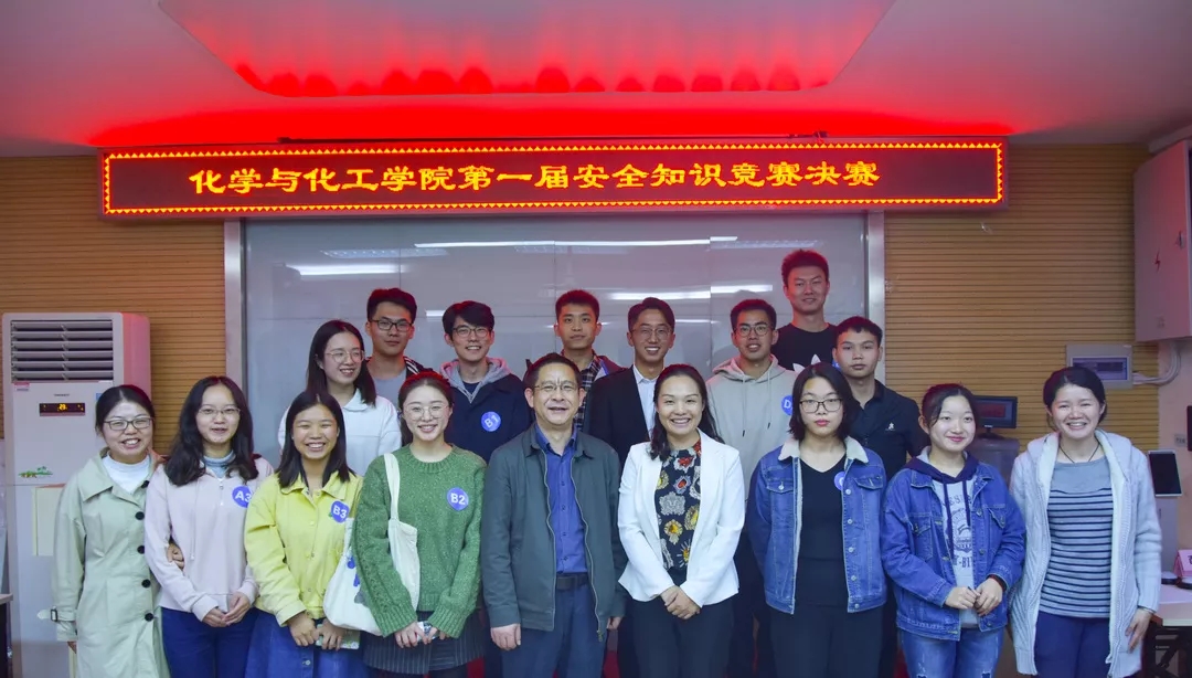 2019年10月25日晚6點半,化學(xué)與化工學(xué)院實驗室安全知識競賽決賽在化學(xué)樓一號會議廳準時舉行。化學(xué)與化工學(xué)院副院長朱啟軍以及副書記吳疆鄂出席比賽,化學(xué)與化工學(xué)院安全管理的兩位老師則擔任仲裁。比賽由楊成蔭同學(xué)主持,研工會組織。