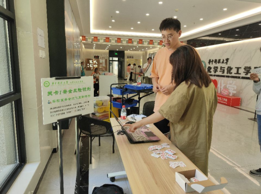 六月是全國第21個(gè)“安全生產(chǎn)月”,為了進(jìn)一步增強(qiáng)師生的實(shí)驗(yàn)室安全防范意識(shí),提高師生實(shí)驗(yàn)安全應(yīng)急技能,推動(dòng)實(shí)驗(yàn)室安全管理規(guī)章制度落實(shí)落地,化學(xué)與化工學(xué)院于2022年6月15日在化學(xué)樓一樓大廳開展實(shí)驗(yàn)室安全文化互動(dòng)體驗(yàn)活動(dòng),本次活動(dòng)由學(xué)院安委會(huì)、研究生會(huì)主辦,主題是“無安全,不實(shí)驗(yàn)”。