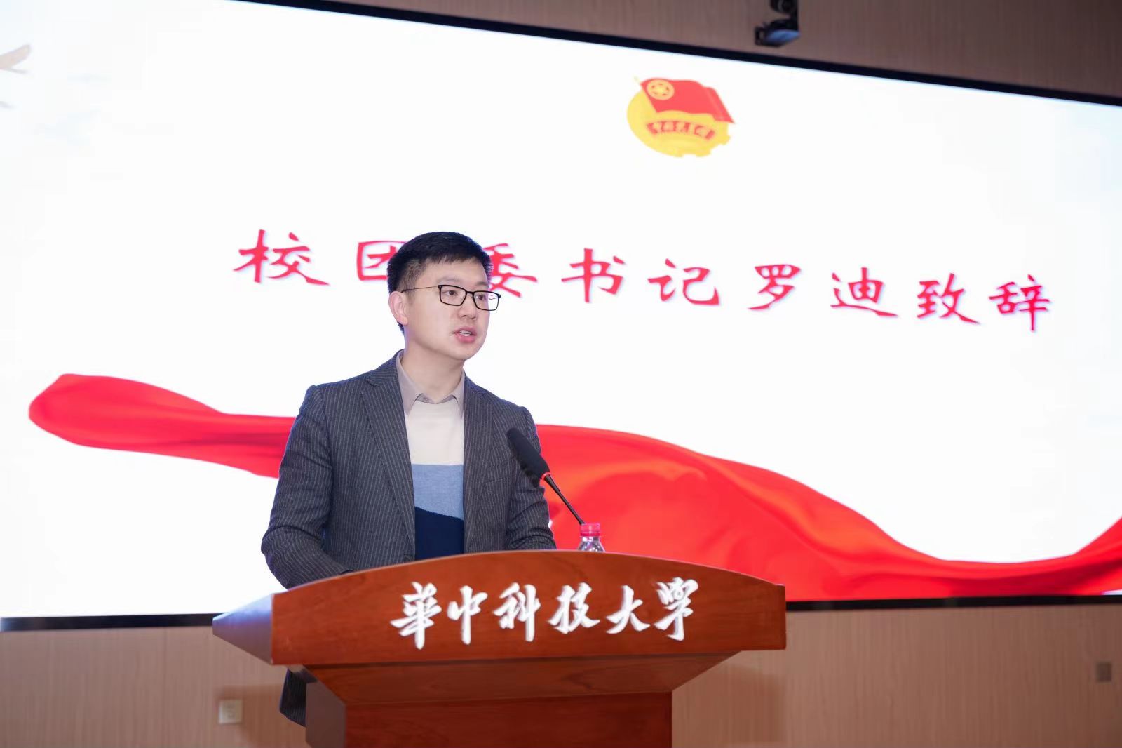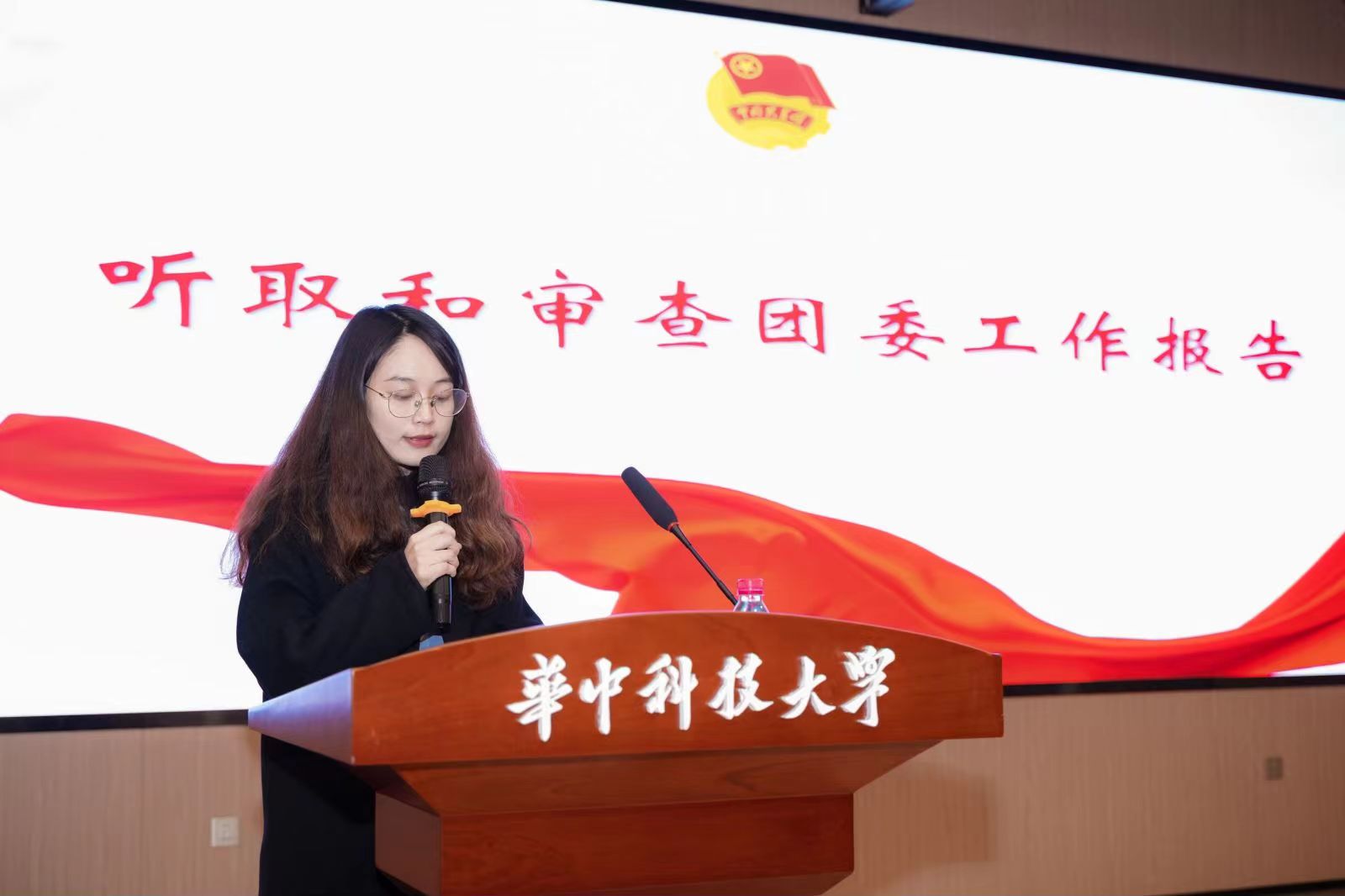 學(xué)院團(tuán)委書記劉趙昊旻代表共青團(tuán)華中科技大學(xué)化學(xué)與化工學(xué)院第一屆委員會(huì)作題為《增強(qiáng)“四力”,譜寫共青團(tuán)工作新篇章》的團(tuán)委工作報(bào)告。