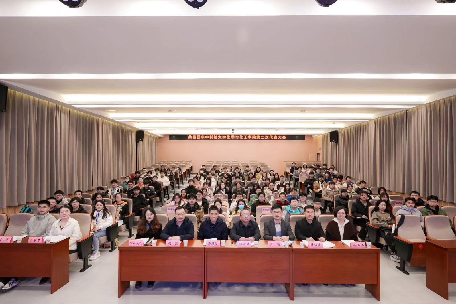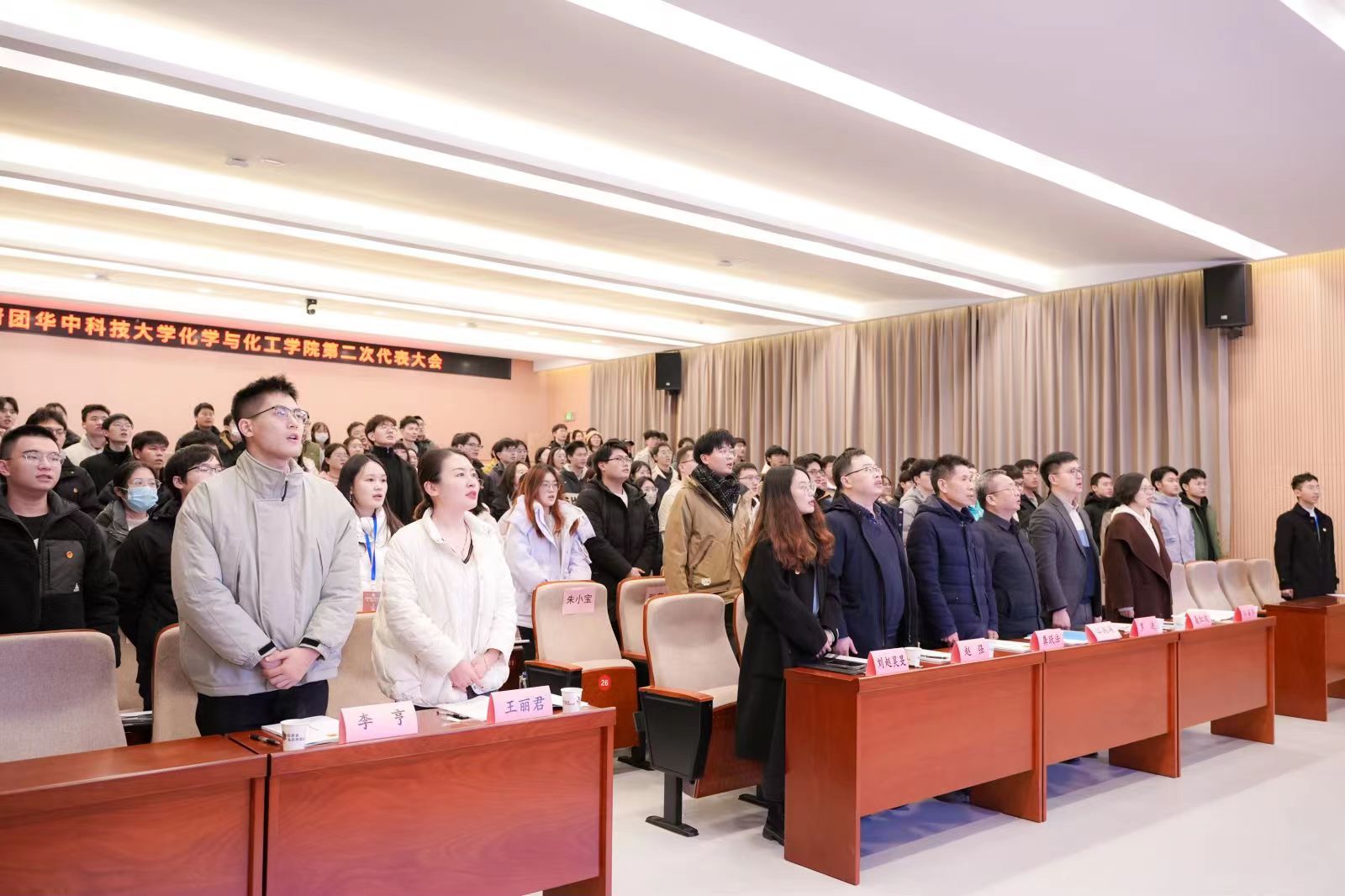 在激昂的國(guó)歌聲中,共青團(tuán)華中科技大學(xué)化學(xué)與化工學(xué)院第二次代表大會(huì)正式開始。