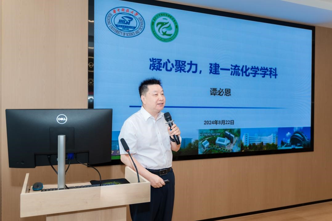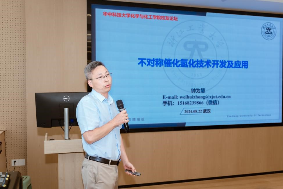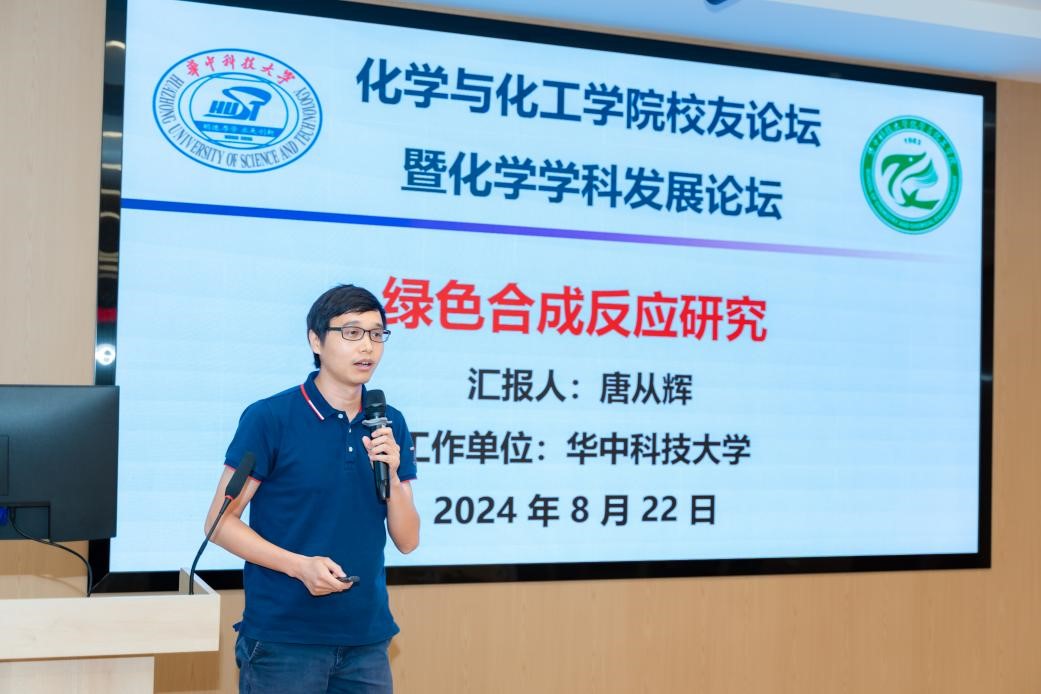 2024 年 8 月 22 日下午,化學(xué)與化工學(xué)院校友論壇暨化學(xué)學(xué)科發(fā)展論壇在化學(xué)樓肇隆報告廳隆重舉行。原化學(xué)與化工學(xué)院系主任徐輝碧、原學(xué)院黨委書記艾一梅、華中科技大學(xué)校友辦主任戴則健,化學(xué)與化工學(xué)院校友會會長朱錦濤、院黨委書記吳疆鄂、院長譚必恩,本科1987級校友中國科學(xué)院院士陳春英、學(xué)院大灣區(qū)校友會會長孫卓明、長三角校友會會長楊財廣及20余位校友與在校師生齊聚一堂,聆聽資深學(xué)者報告,交流研究經(jīng)驗,分享創(chuàng)新成果,助力化學(xué)學(xué)科高質(zhì)量發(fā)展。