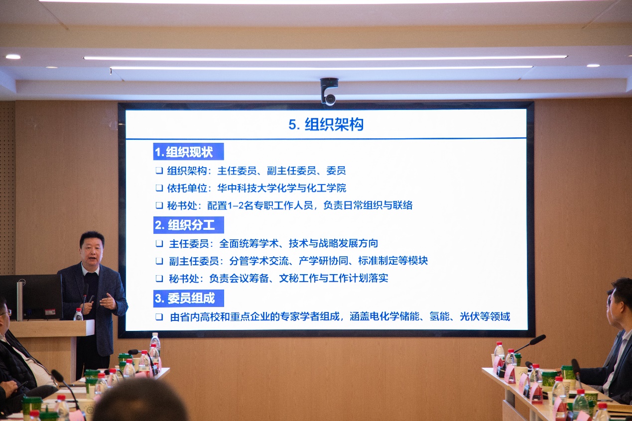 譚必恩院長匯報(bào)了能源化學(xué)專業(yè)委員會的籌備過程,他從前期調(diào)研、專家論證、組織架構(gòu)設(shè)計(jì)等多個(gè)方面介紹了籌備工作的具體情況,并系統(tǒng)闡述了專委會未來的工作規(guī)劃。規(guī)劃聚焦于學(xué)術(shù)交流、產(chǎn)學(xué)研合作、成果轉(zhuǎn)化、科普宣傳及決策咨詢等核心職能,勾勒出專委會服務(wù)學(xué)科發(fā)展與地方經(jīng)濟(jì)的清晰藍(lán)圖。