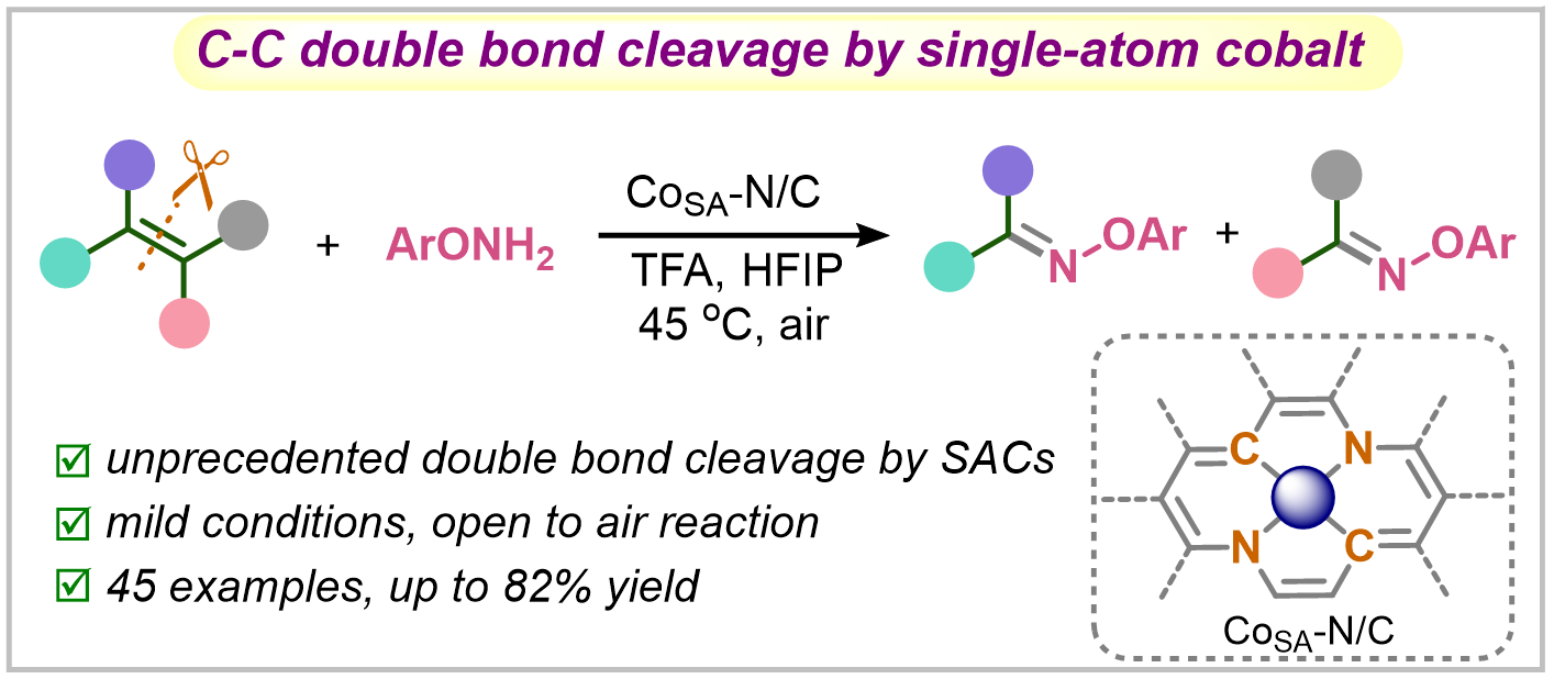 11月15日,化學(xué)與化工學(xué)院唐從輝研究員課題組的最新研究成果“Direct C-C Double Bond Cleavage of Alkenes Enabled by Highly Dispersed Cobalt Catalyst and Hydroxylamine”在國(guó)際頂級(jí)期刊《德國(guó)應(yīng)用化學(xué)》(Angew. Chem. Int. Ed.)上刊發(fā)。