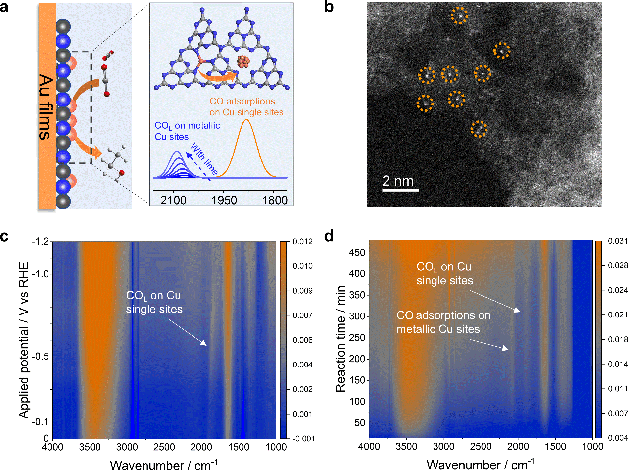 圖1. 基于原位表面增強(qiáng)紅外吸收光譜技術(shù)定量分析銅單原子催化劑的結(jié)構(gòu)演變