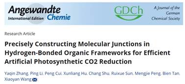 近日,我院譚必恩教授和王笑顏副研究員的最新研究成果“Precisely Constructing Molecular Junctions in Hydrogen-Bonded Organic Frameworks for Efficient Artificial Photosynthetic CO2 Reduction”在國(guó)際頂級(jí)期刊《德國(guó)應(yīng)用化學(xué)》(Angewandte Chemie International Edition)雜志刊發(fā)。