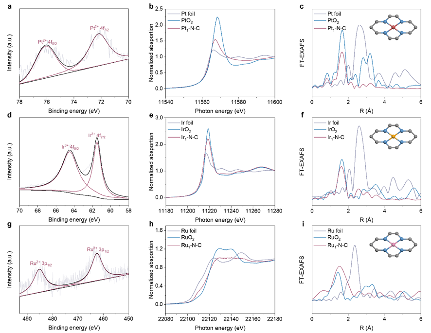 圖2. Pt1–N–C, Ir1–N–C, 和Ru1–N–C催化劑電子結(jié)構(gòu)表征