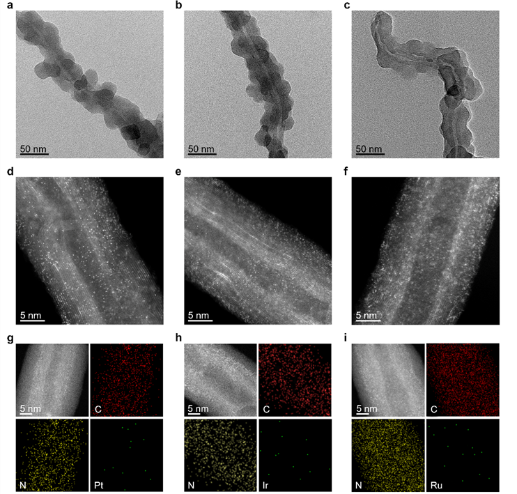 圖1. Pt1–N–C, Ir1–N–C, 和Ru1–N–C催化劑形貌表征
