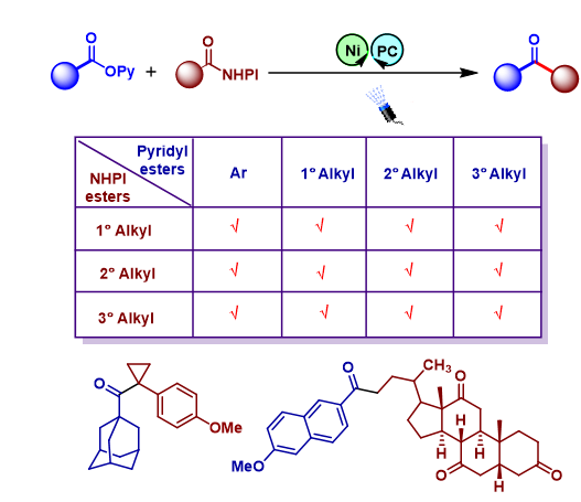 11月15日國(guó)際知名期刊《德國(guó)應(yīng)化》(Angewandte Chemie International Edition)在線(xiàn)刊發(fā)了化學(xué)與化工學(xué)院袁偉明研究員團(tuán)隊(duì)的最新研究成果:“利用可見(jiàn)光/鎳協(xié)同催化還原酰化偶聯(lián)策略將酯轉(zhuǎn)化成酮的研究進(jìn)展” (From Esters to Ketones via a Photoredox-Assisted Reductive Acyl Cross-Coupling (PARAC) Strategy, DOI: 10.1002/anie.202114731)。