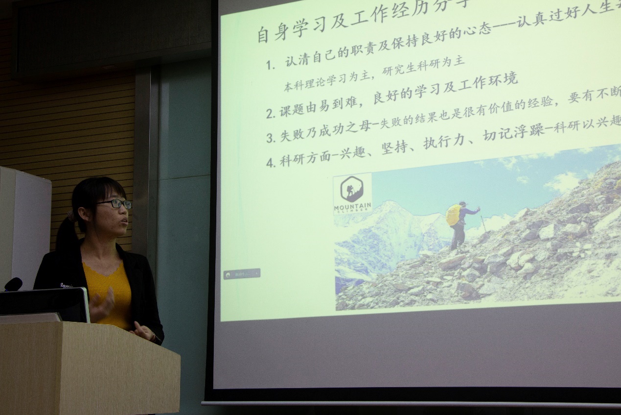 孫寧寧從自己的個人經歷出發(fā),分享了自己的學習工作經歷。從香港浸會大學科研助理到深圳市第二人民醫(yī)院助理研究員,再到華中科技大學科研助理,輾轉的工作經歷更加堅定了自己對科研的熱忱。她鼓勵大家認清職責,保持心態(tài),認真過好人生的每個階段,培養(yǎng)自己對每一份事業(yè)的熱愛是上下求索的內源動力。此外,她講到,實驗中的失敗是大多數并以自己自身的科研工作為例向我們展示了質變的發(fā)生需要無數次量變的積累,只有戒驕戒躁,堅韌不拔,才能最終迎來拐點。