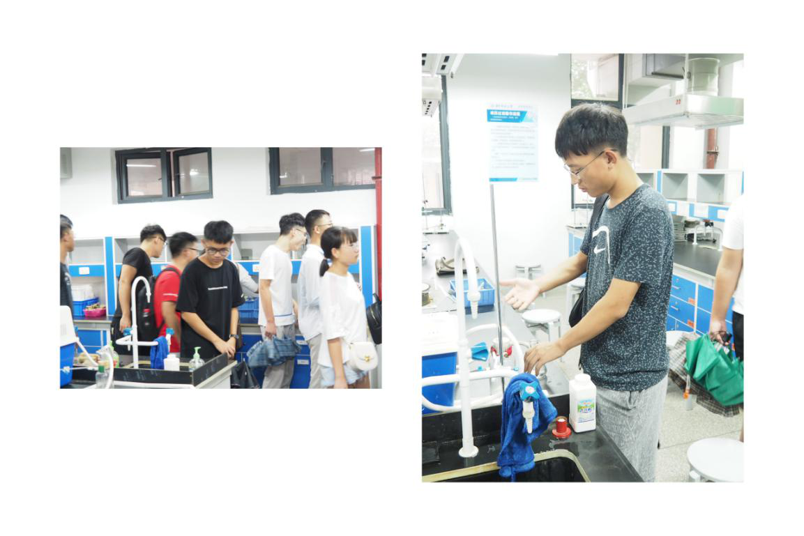 結(jié)束了分析化學(xué)實驗室的參觀后,同學(xué)們來到了物理化學(xué)實驗室。在這里,大家了解到了凝固點降低法測相對分子質(zhì)量、電動勢法測定化學(xué)反應(yīng)的熱力學(xué)函數(shù)變值等實驗的基本操作流程和實驗原理。行程最后,同學(xué)們來到了附七樓的有機(jī)化學(xué)實驗室。由于有機(jī)物大多具備一定毒性,老師著重強(qiáng)調(diào)了實驗室安全守則:嚴(yán)禁打鬧、有毒物品的操作應(yīng)該在通風(fēng)櫥內(nèi)完成等,還為大家示范了洗眼器的用法。