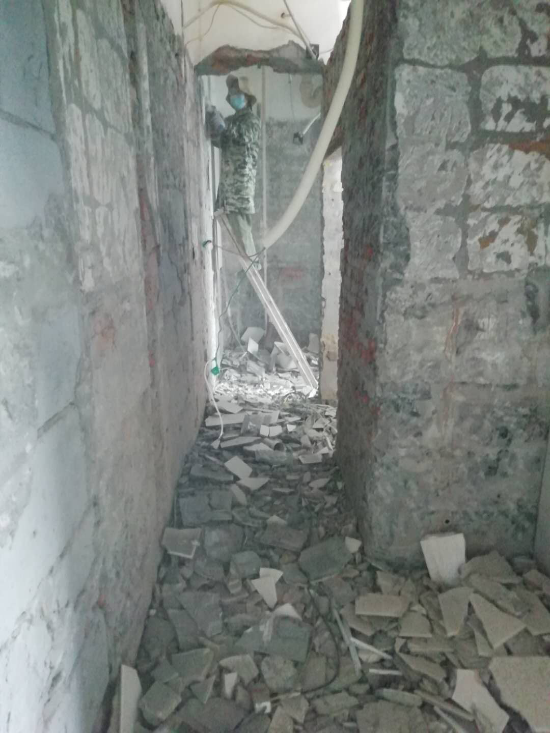 2、7月13日至19 日,通風(fēng)改造施工隊完成3-9層室內(nèi)風(fēng)井拆除工作,對6、7、8層風(fēng)井按照圖紙進(jìn)行適度擴(kuò)寬,同時做好新擴(kuò)風(fēng)井的加固工作。對改造的實驗室墻面和吊頂進(jìn)行砍粉。清理主樓設(shè)備夾層,對通風(fēng)管道和電氣管道進(jìn)行移位,為安裝新的風(fēng)機(jī)和尾氣處理設(shè)備做好準(zhǔn)備工作。對附樓屋面鋼架進(jìn)行拆除。