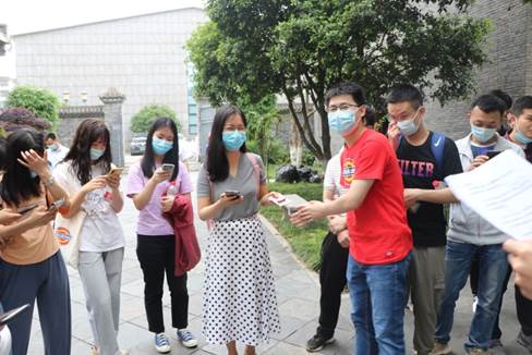 參觀完最后一站,同志們齊聚在中共五大會址內,由鄧文浩同志提問有關紀念館的黨史題,同志們積極作答,參會人員進行回答并接受獎品。
