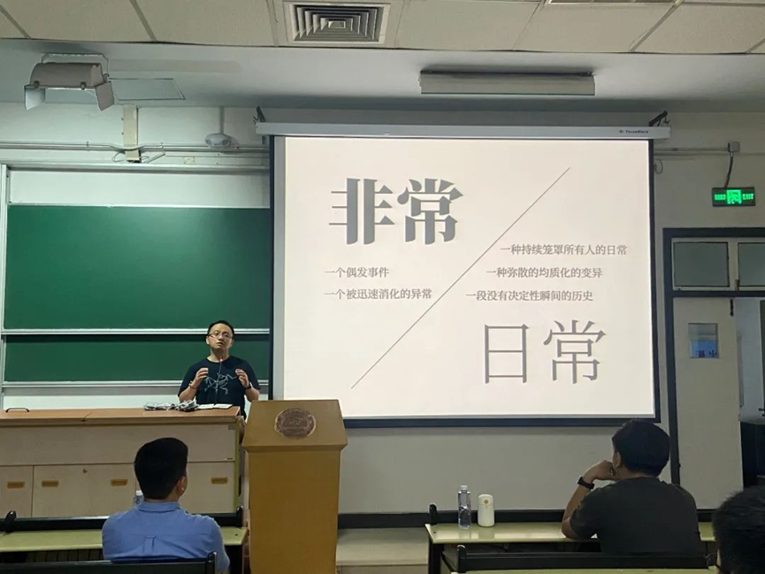 5月27日,長江日報(bào)報(bào)業(yè)集團(tuán)可視化實(shí)驗(yàn)室首席創(chuàng)意官、學(xué)院美育導(dǎo)師賈代騰飛老師為化院師生帶來了學(xué)院美育系列課程第三講——《日常非常》。學(xué)院黨委副書記聶紅波、輔導(dǎo)員劉趙昊旻、張帆及百余名學(xué)生參加此次課程。