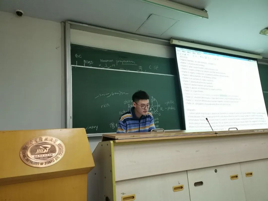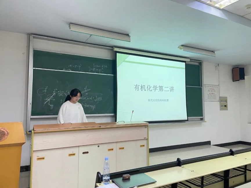 最后一個(gè)部分便是科研知識(shí)早接觸環(huán)節(jié)了,這是大一同學(xué)每個(gè)人心中的疑問(wèn)科研到底是怎樣的呢?學(xué)長(zhǎng)學(xué)姐為了讓同學(xué)們了解相關(guān)知識(shí),提前做好了PPT,讓同學(xué)們可以更好的感知大學(xué)里科研在干些什么。并且會(huì)在讓同學(xué)理解的前提下教授有機(jī)化學(xué)知識(shí),以板書(shū)和PPT的形式形象教學(xué),增加了趣味性和可理解性,讓同學(xué)們收獲良多。