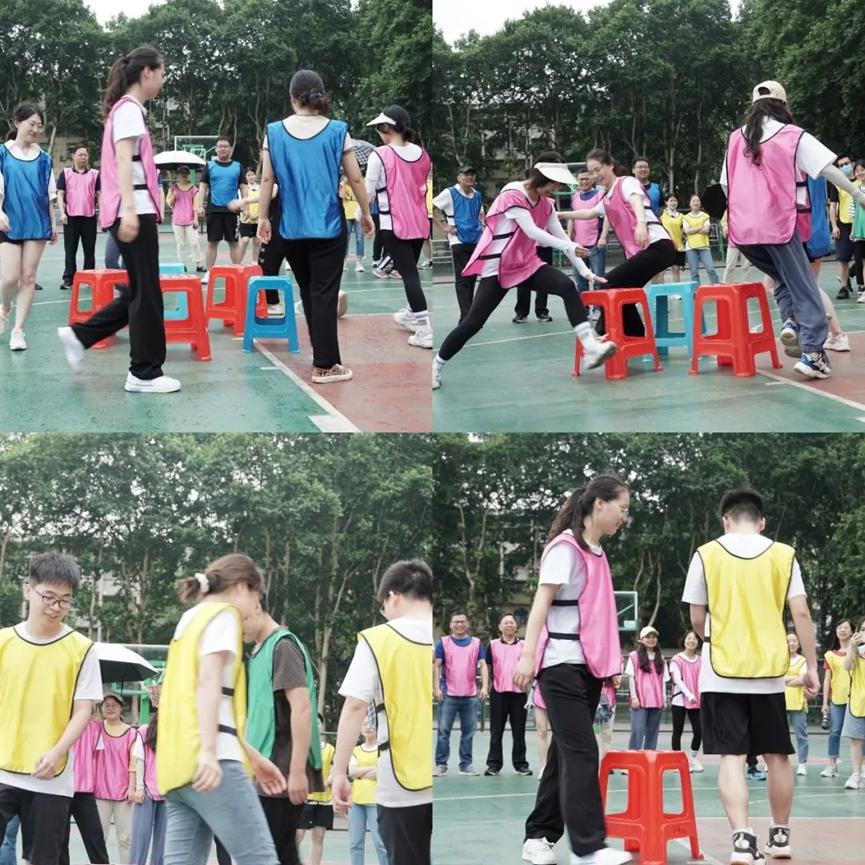 第二個項目是“搶凳子”,四個組別按照抽簽順序兩兩角逐,同學們各顯神通,粉隊隊員宋逸菲更是上演了單騎救主的好戲,為黃隊拿下關(guān)鍵分數(shù)。游戲最后,德育導師們也齊齊上陣,為各自代表隊伍爭取積分。激烈角逐之后,黃隊薛志剛、陳芳老師依靠精妙的配合為隊伍拿下獎勵積分。