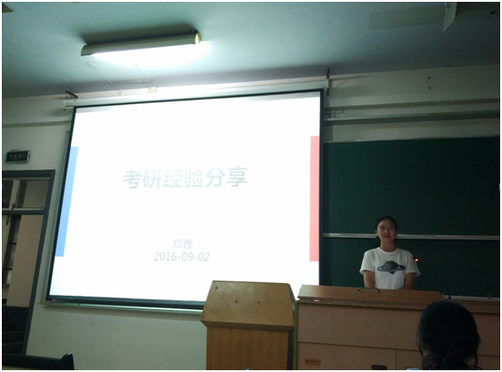 首先,劉琦老師著重分析了往年學(xué)院畢業(yè)生情況,利用往年的數(shù)據(jù)為同學(xué)們未來(lái)的發(fā)展選擇提供了借鑒。隨后,劉琦老師按月份詳盡分析了每月應(yīng)注意的升學(xué)注意事項(xiàng),為下半年的學(xué)習(xí)生活指明了方向。第三個(gè)部分是劉琦老師就自己的考研經(jīng)歷為在座的學(xué)生提出了自己的心得感受,并且分享了自己考研時(shí)的照片鼓舞同學(xué)們。接著,12級(jí)以高分考研成績(jī)被我院高分子研究所錄取的鄭鑫講述了她的充實(shí)的考研之路。