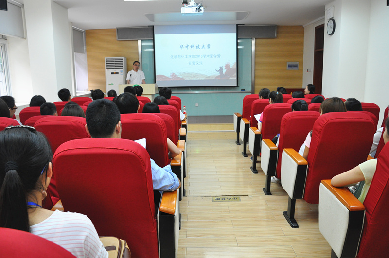 2015年7月4日下午,我院2015年學(xué)術(shù)夏令營活開營儀式于學(xué)院一號會議室隆重舉行。來自五湖四海的27名高校學(xué)子在華中科技大學(xué)化學(xué)與化工學(xué)院齊聚一堂,相互學(xué)習(xí)交流。此次參加開營儀式的領(lǐng)導(dǎo)有校教務(wù)處處長郭興蓬,我院黨總支書記李濤,副書記吳疆鄂,副院長朱錦濤以及學(xué)生工作組的輔導(dǎo)員們。儀式由吳疆鄂老師主持。