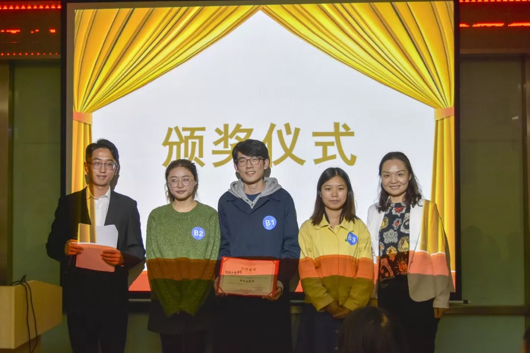 最終鄭松林、肖圣澤、尹小瑩三位同學(xué)以個人得分前三名的成績獲得個人獎,肖圣澤、尹小瑩、唐倩三位同學(xué)組成的“魔仙堡隊”以團隊得分第一名的成績獲得團隊獎。朱院長與吳書記分別為獲得個人獎和團隊獎的同學(xué)頒發(fā)證書并合影留念。