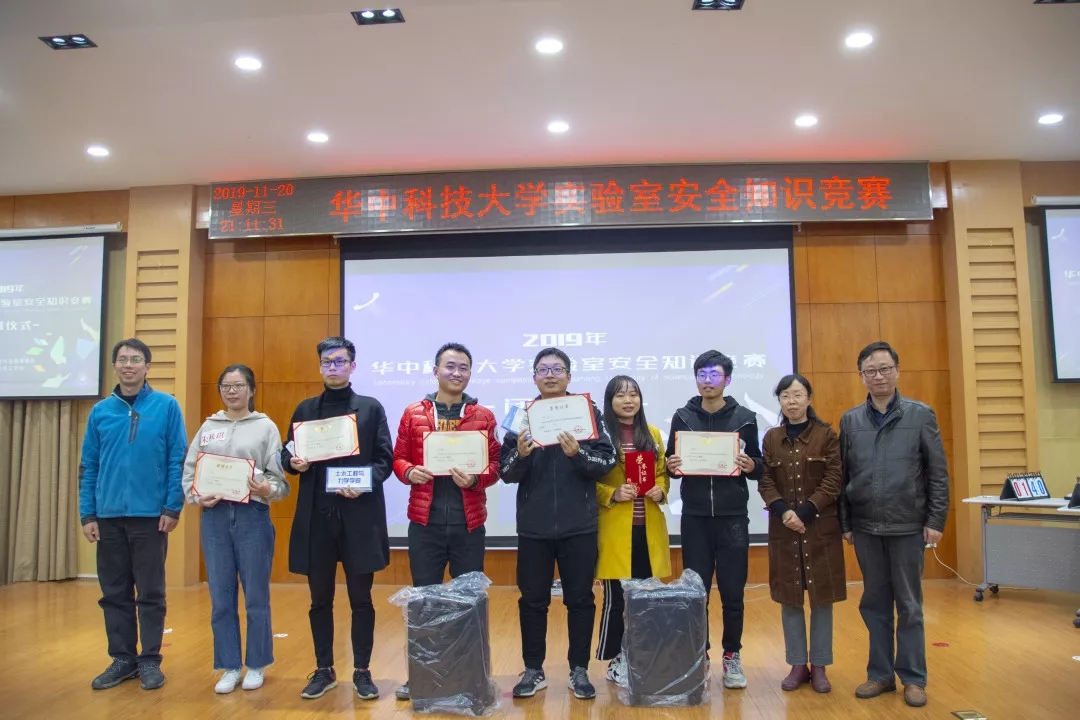 11月20日晚六點(diǎn),華中科技大學(xué)實(shí)驗(yàn)室安全知識(shí)競(jìng)賽決賽于大學(xué)生活動(dòng)中心B座513成功舉辦。出席決賽的嘉賓有:實(shí)驗(yàn)室與設(shè)備管理處處長(zhǎng)李震彪,副處長(zhǎng)毛勇杰,化學(xué)與化工學(xué)院副院長(zhǎng)朱啟軍,以及實(shí)驗(yàn)室與設(shè)備管理處的老師們,其中仲裁席嘉賓由馮志力老師和楊春華老師擔(dān)任。