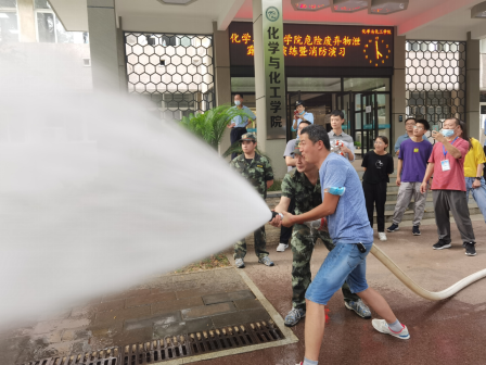 為進一步強化全院師生的安全意識,提高師生應(yīng)急救災(zāi)的實戰(zhàn)技能,防患于未然。2021年6月24日下午14:30我院聯(lián)合校保衛(wèi)處、賽弗安全文化等部門在化學(xué)樓組織開展了“化學(xué)廢棄物泄漏應(yīng)急演練暨消防演習(xí)”活動,化學(xué)樓和韻苑28棟的一百多名師生參加了本次演練活動。保衛(wèi)處治安與消防管理科科長毛天音、副科長鄭明皞、化學(xué)與化工學(xué)院副院長朱啟軍、以及賽弗丁睿總經(jīng)理參與指導(dǎo)本次活動。