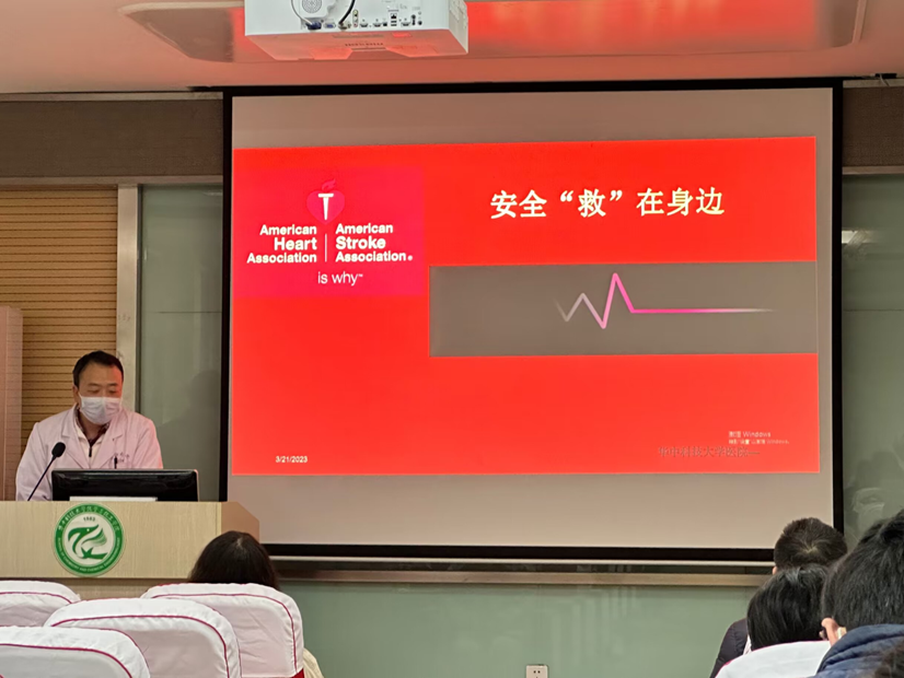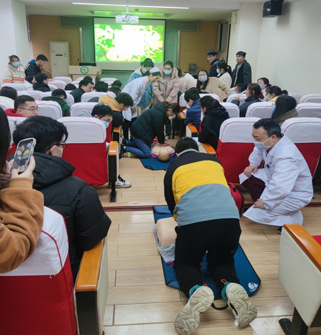 2023年3月21日下午我院聯(lián)合華中科技大學(xué)校醫(yī)院,在化學(xué)樓1號(hào)會(huì)議室開展了實(shí)驗(yàn)室意外傷害處置、心肺復(fù)蘇、自動(dòng)體外除顫儀AED和海姆立克急救的知識(shí)培訓(xùn)和實(shí)操體驗(yàn)活動(dòng)。校醫(yī)院的醫(yī)護(hù)人員,副院長(zhǎng)朱啟軍,學(xué)院安全員何丹、吳貝娜,研會(huì)安全部成員以及90余名研究生參加了本次培訓(xùn)。本次培訓(xùn)由學(xué)院安全員何丹老師主持。