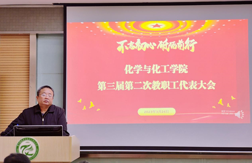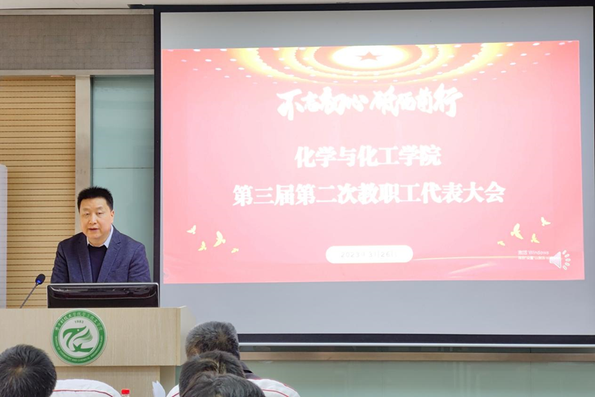 2023年3月26日,化學與化工學院第三屆第二次教職工代表大會在化學樓召開,院長譚必恩、黨委書記江洪洋等學院領導及第三屆教職工代表參加了大會。