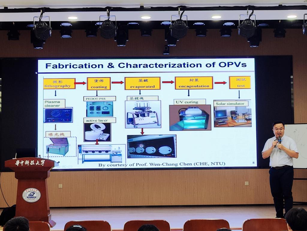 來自臺灣大學(xué)的闕居振副教授風(fēng)趣幽默,從國內(nèi)外研究進展入手,介紹了面向光電應(yīng)用的共軛聚合物和雜化鈣鈦礦設(shè)計,通過新型光伏電池的研究為綠色能源的開發(fā)提供新思路: