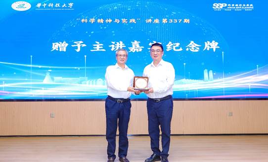 講座開始前,華中科技大學(xué)副校長高亮向陳學(xué)思院士贈予主講嘉賓紀(jì)念牌.