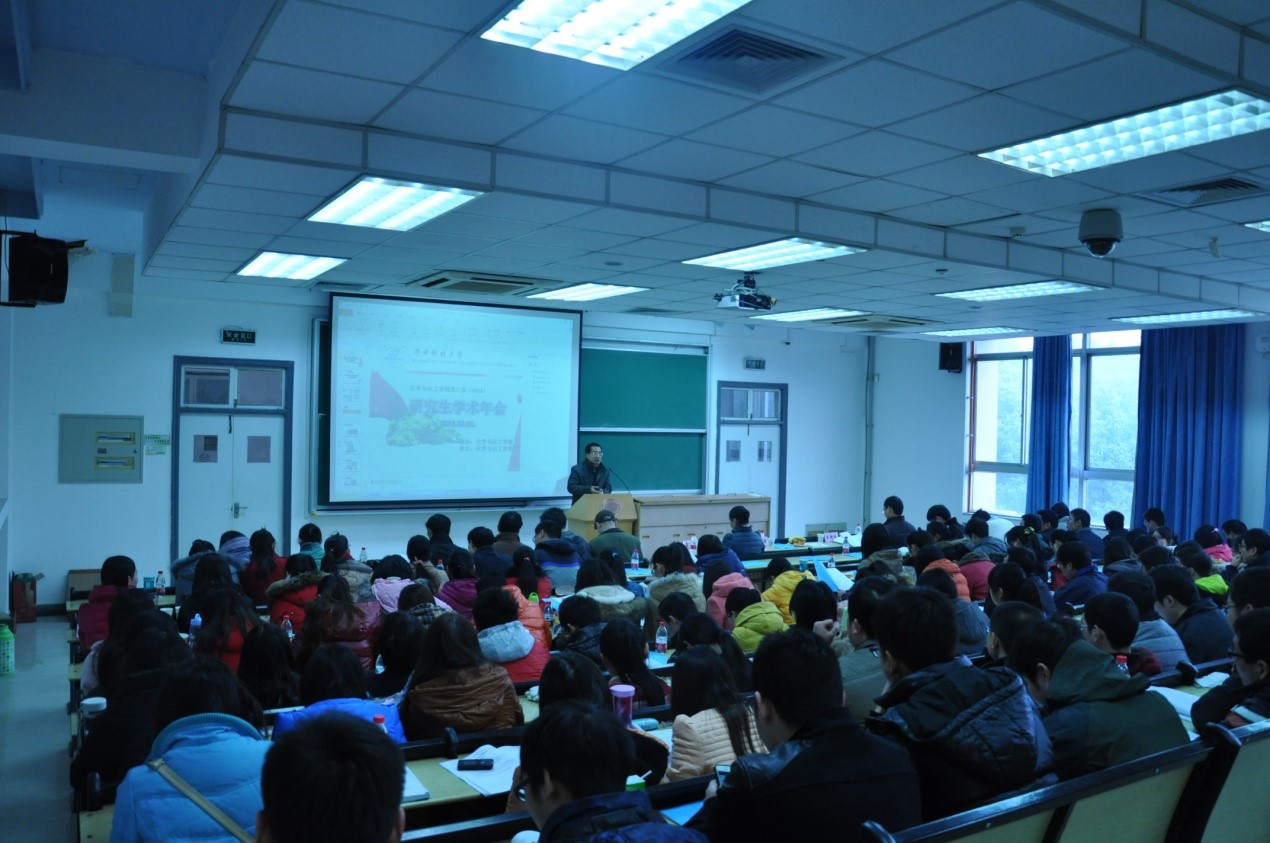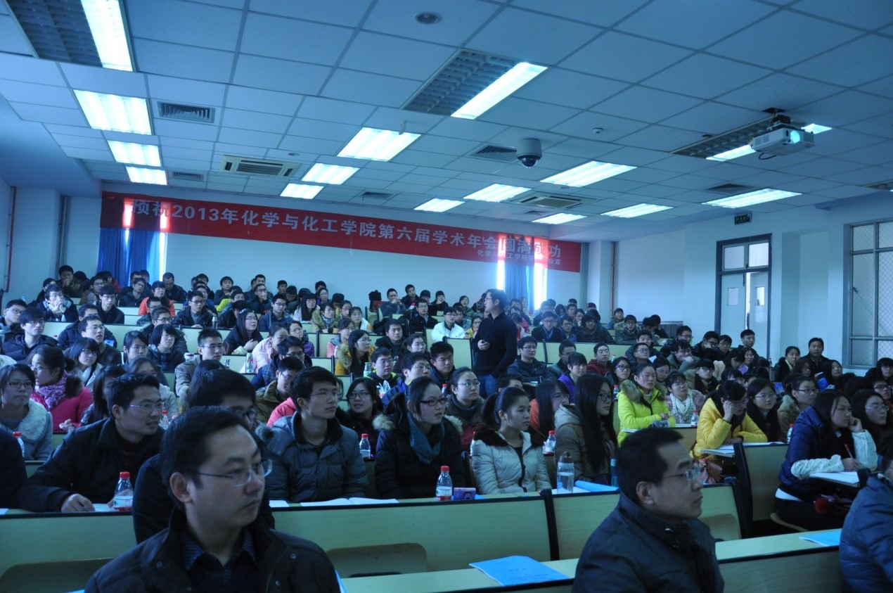 大會(huì)首先由李濤教授致開(kāi)幕詞,接下來(lái),來(lái)自藥學(xué)院的李華教授,化學(xué)與化工學(xué)院龔躍法教授,化學(xué)與化工學(xué)院夏帆教授分別在大會(huì)上做了精彩的學(xué)術(shù)報(bào)告,教授們用他們?cè)溨C的語(yǔ)言,嚴(yán)謹(jǐn)?shù)膽B(tài)度給同學(xué)們展示了高端前言的學(xué)術(shù)研究,使同學(xué)們受益匪淺,大會(huì)上同學(xué)們也積極與老師互動(dòng)交流以汲取報(bào)告的精華。