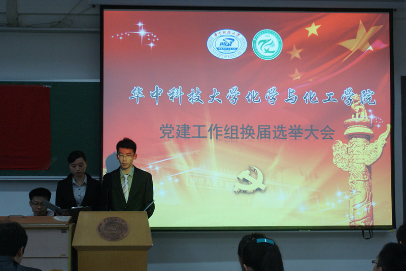 2013年6月17日七點(diǎn),化學(xué)與化工學(xué)院黨建工作組第一次換屆大會(huì)在西十二教學(xué)樓隆重召開(kāi)。出席本次大會(huì)的嘉賓和代表有:化學(xué)與化工學(xué)院黨總支副書記吳疆鄂,學(xué)工組長(zhǎng)石淵龍,黨建輔導(dǎo)員付冰冰,分團(tuán)委書記朱玉玲以及各兄弟院系黨建工作組負(fù)責(zé)人等。化學(xué)與化工學(xué)院本、碩支部學(xué)生黨員代表、各級(jí)學(xué)生組織代表以及黨建工作組全體成員出席了本次大會(huì)。