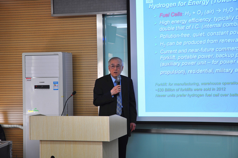 在受聘儀式之前,楊祖保就給化學(xué)與化工學(xué)院的部分師生代表做了題為《清潔能源之吸附》的科研報(bào)告,從吸附過程基本原理、吸附性能和材料等多個(gè)方面,系統(tǒng)介紹了自己在國際吸附領(lǐng)域的研究結(jié)果和心得,到會(huì)師生表現(xiàn)出了濃厚的興趣和熱情,提問踴躍。