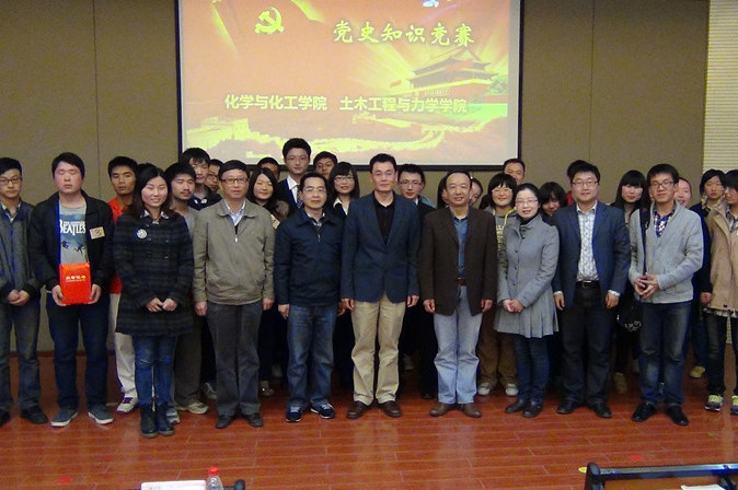 4月21日晚七點(diǎn),由化學(xué)與化工學(xué)院和土木工程與力學(xué)學(xué)院聯(lián)合舉辦的“我的中國夢”黨史知識競賽決賽在南二樓學(xué)術(shù)報告廳隆重舉行。決賽由來自6個院系的7支學(xué)生代表隊和1支教師代表隊組成。出席本次活動的嘉賓有:校黨委組織部黨校辦公室主任耿遠(yuǎn)明老師、校黨委學(xué)生工作處思想教育科李迎霞老師、土木工程與力學(xué)學(xué)院黨總支書記文鋒老師、化學(xué)與化工學(xué)院黨總支書記李濤教授、土木工程與力學(xué)學(xué)院黨總支副書記毛勇杰老師、化學(xué)與化工學(xué)院黨總支副書記吳疆鄂老師,以及院系輔導(dǎo)員和各學(xué)生組織代表。