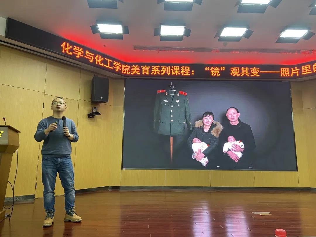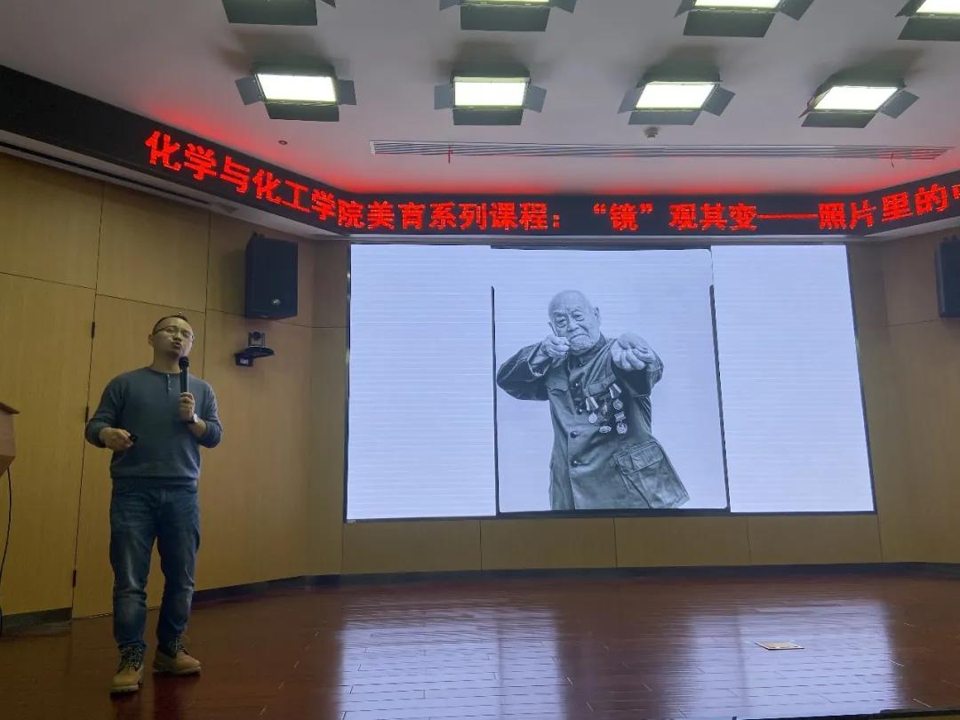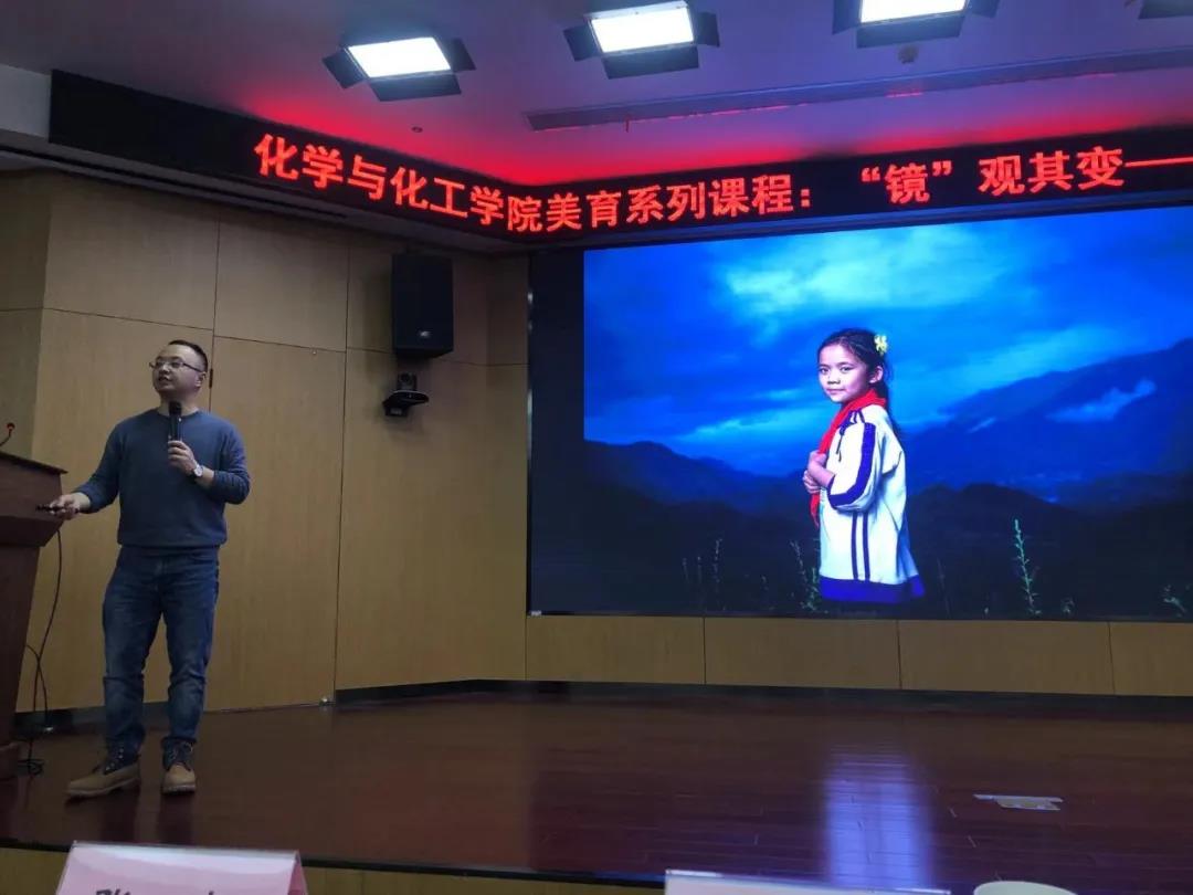 為引領(lǐng)學(xué)生樹(shù)立正確的審美觀念、陶冶高尚的道德情操、塑造美好心靈,遵循美育特點(diǎn),弘揚(yáng)中華美育精神, 以美育人、以美化人、以美培元,培養(yǎng)德智體美勞全面發(fā)展的社會(huì)主義建設(shè)者和接班人,化學(xué)與化工學(xué)院特開(kāi)設(shè)美育系列課程,邀請(qǐng)長(zhǎng)江日?qǐng)?bào)報(bào)業(yè)集團(tuán)可視化實(shí)驗(yàn)室首席創(chuàng)意官賈代騰飛為我院美育導(dǎo)師,從攝影的角度帶領(lǐng)大家感悟美學(xué)藝術(shù)在生活中的力量。