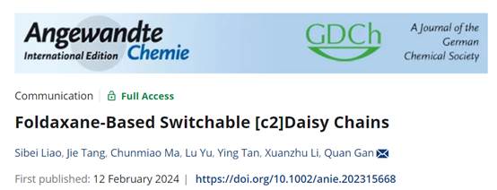 2月12日,國際期刊《Angew. Chem. Int. Ed.》雜志在線刊發(fā)了我院甘泉教授的最新研究成果“Foldaxane-Based Switchable [c2]Daisy Chains”。