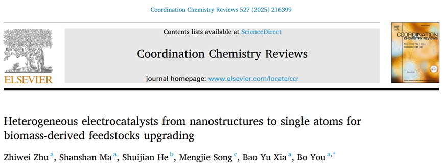 12月18日,我院游波教授團(tuán)隊受《Coordination Chemistry Reviews》期刊邀請,為其“Rising Stars 2023”專刊撰寫的 “Heterogeneous Electrocatalysts from Nanostructures to Single Atoms for Biomass-derived Feedstocks Upgrading”論文正式發(fā)表。