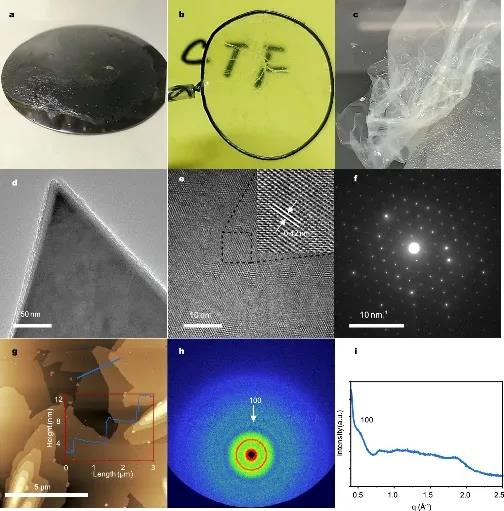 圖2 共價三嗪框架薄膜的光學(xué)照片及微觀形貌表征