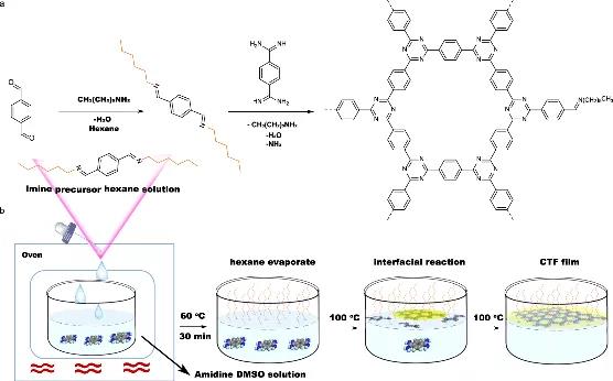 圖1:脂肪胺介導(dǎo)的共價三嗪框架薄膜制備策略示意圖