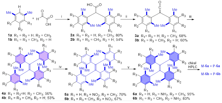 Scheme 1. 位阻型TPE螺旋體的合成及其氨基的平面結(jié)構(gòu)