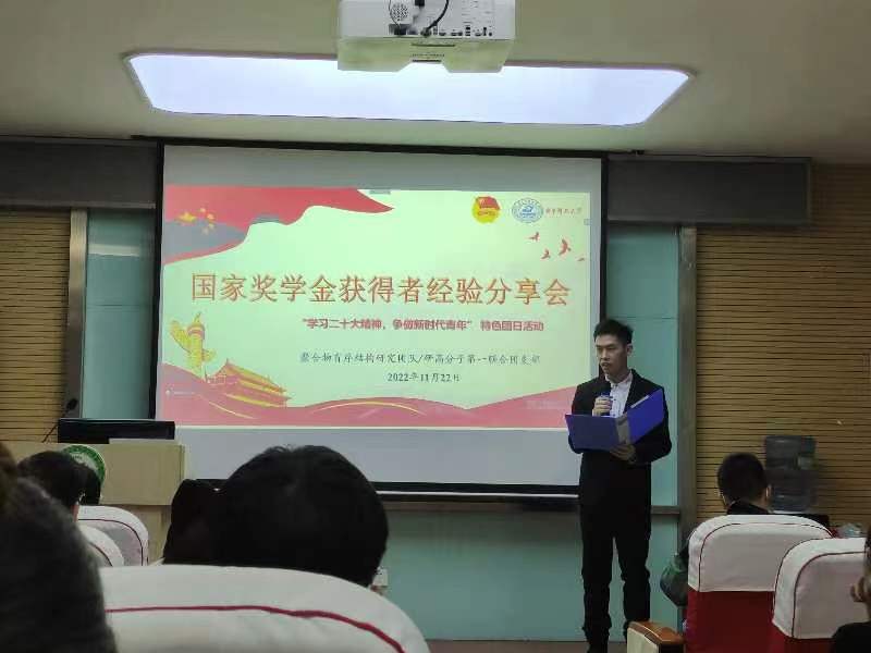 (通訊員:李澤科)11月24日19:00,化學與化工學院研究生會聯合聚合物有序結構研究團隊/研究生高分子第一團支部面向全院研究生聯合舉辦了國獎分享特色團日活動活動。孫寧寧,陳振賢,張涵威,楊雅碧,張守特等國獎獲得者在學習,科研,生活方面進行全方位闡釋并面對參會者提問進行了細心的解答,輔導員許瑜梓作為特邀嘉賓參加此次活動。