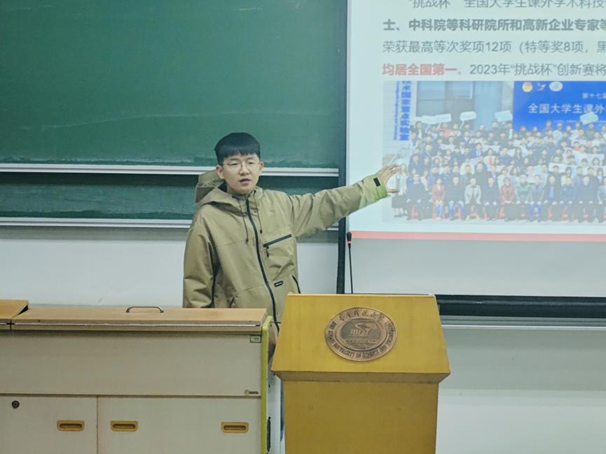 同時(shí),吳老師列舉了一些往年我校學(xué)子參與“挑戰(zhàn)杯”的競(jìng)賽獲獎(jiǎng)結(jié)果,并著重強(qiáng)調(diào)了參與競(jìng)賽對(duì)于提升我們的綜合素養(yǎng)的重要性,強(qiáng)調(diào)在讀萬(wàn)卷書的同時(shí),也要在積極實(shí)踐,行萬(wàn)里路。