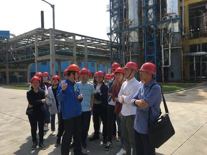 在會議室了解了公司的基本信息以及參觀生產(chǎn)基地的注意事項后,公司工程部長帶我們參觀了苯甲酸的制造車間,在那里我們更加清晰直觀地學(xué)習(xí)到課本之外的知識,同學(xué)們都對自動化生產(chǎn)工藝贊嘆不已。