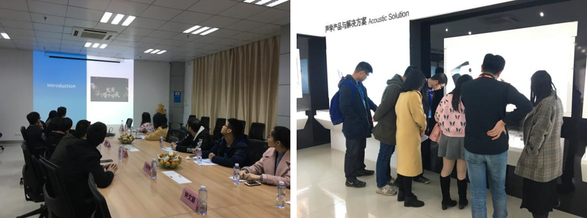 11月28日下午14:30在劉琦老師的帶領(lǐng)下,六名化院研究生乘車來到瑞聲科技(常州)公司,該公司人力資源部經(jīng)理姚巖,高級(jí)工程師黃達(dá)以及就職于此的華中科技大學(xué)校友代表們給予了熱情接待。