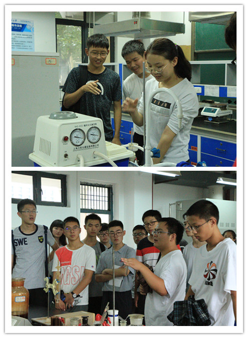 實驗中心的老師熱情地接待了同學(xué)們。在化學(xué)樓附一樓的無機(jī)化學(xué)實驗室,老師細(xì)致地為新生們介紹實驗室地基本概況、主要用途、注意事項等方面的問題。從同學(xué)們在高中實驗中就已熟知的試管、燒杯到對多數(shù)同學(xué)仍屬陌生的抽濾裝置的使用,老師都親自演示并加以講解。