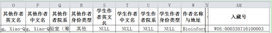 校科協(xié)按第一作者所在單位,通訊作者所在單位,參與作者所在單位的順序?qū)⒄撐姆值綄W(xué)院,一篇論文只分到一個(gè)院系,各院系間論文不重復(fù)。請(qǐng)老師核實(shí)、補(bǔ)齊表中作者的相關(guān)信息(從G-R列)。