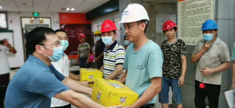 2、8月4日下午5:00,學(xué)院在化學(xué)樓一樓大廳舉行對(duì)化學(xué)樓綜合改造施工方和監(jiān)理方酷暑送清涼活動(dòng)。學(xué)院黨委書(shū)記李濤、副院長(zhǎng)朱啟軍、院工會(huì)主席高中洪參加了慰問(wèn)儀式。朱啟軍代表學(xué)院對(duì)所有施工人員表示感謝,隨后李書(shū)記、朱院長(zhǎng)、高主席向施工方代表發(fā)放送清涼慰問(wèn)物資,表達(dá)學(xué)院對(duì)工人的關(guān)愛(ài)。