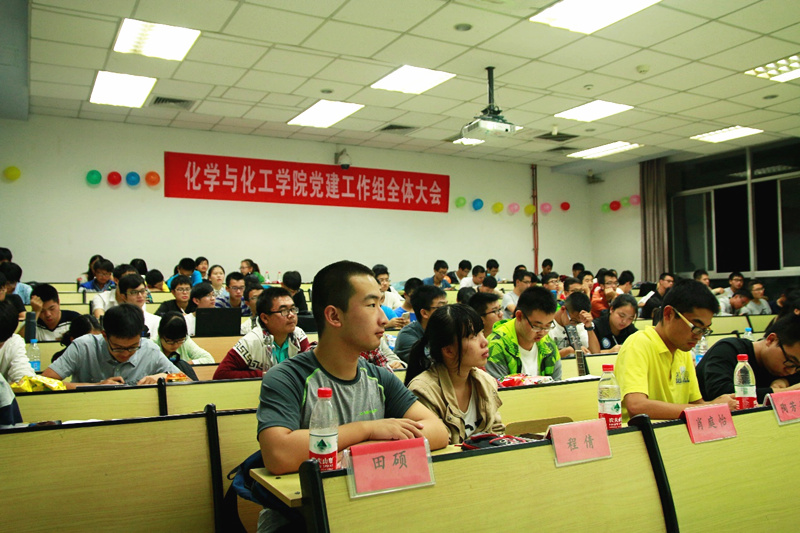 2015年10月25日晚七點(diǎn),化院黨建工作組第一次全體大會(huì)在西十二N110教室圓滿舉行。本次大會(huì)由黨建學(xué)習(xí)部的小伙伴們籌備,并在黨建全體成員的精心裝點(diǎn)下變得豐富多彩。黨建工作組秘書長(zhǎng)萬(wàn)輝海以及黨建工作組各部門部長(zhǎng)出席了本次大會(huì)。此外,本次大會(huì)還邀請(qǐng)來(lái)了神秘嘉賓,前黨建工作組主任邵太康,前黨建工作組監(jiān)察部部長(zhǎng)錢詩(shī)睿和前黨建工作組宣傳部部長(zhǎng)姜濤。