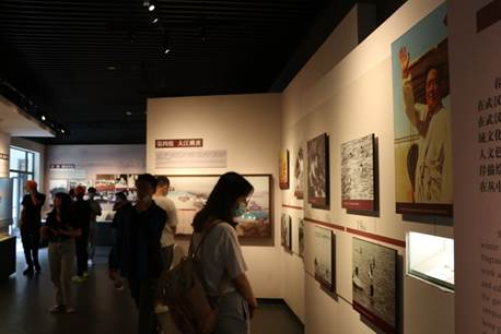 故居展示了毛澤東的部分親友畫像,還有在武漢領導農民運動的歷史資料,他針對黨內外對農民革命斗爭的責難,親自在農村考察,撰寫了影響中國革命的《湖南農民運動考察報告》。展廳還有后來新中國成立后,毛主席在武漢考察的影像資料,在參觀過程中,成員們積極進行交流和討論,感慨偉人的英雄革命精神,能在當時的社會背景下走不同于尋常的道路,心中有光,滿懷斗志向未至之境探索的精神,一張張泛黃的老照片給同學們留下了深刻印象。