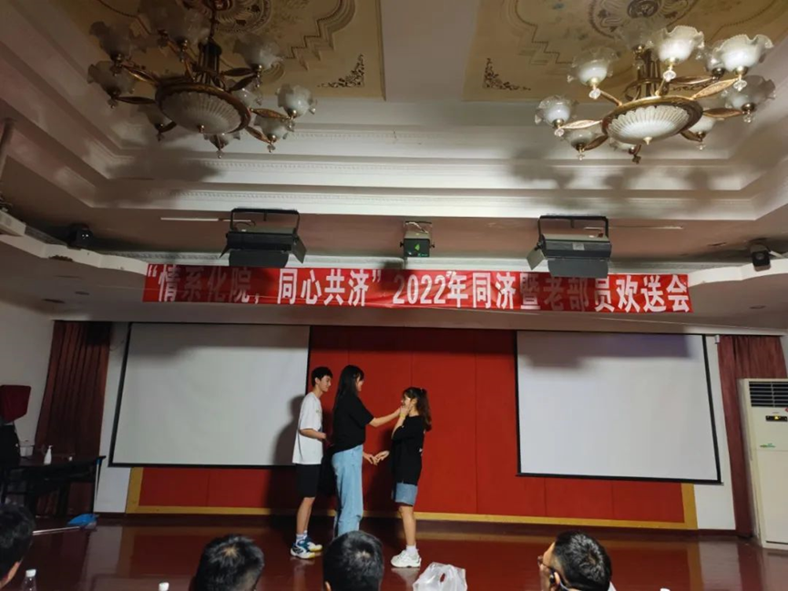 6月3日,2022同濟暨老部員歡送會在西教工活動中心如期舉行。學(xué)院黨委副書記聶紅波老師、同濟2101班教師班主任王思樺老師、2102班教師班主任白濤老師、2104班教師班主任王桂華老師、21級輔導(dǎo)員張帆、劉趙昊旻老師出席晚會。近百名同學(xué)共同參加,其樂融融。