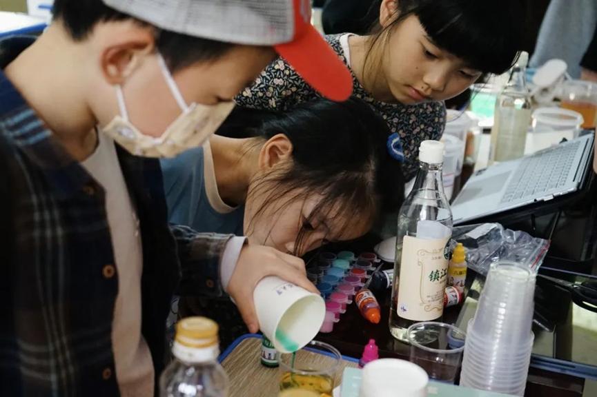 在互動(dòng)環(huán)節(jié),小朋友們躍躍欲試,每個(gè)人都得到了自己制作的熔巖燈。
